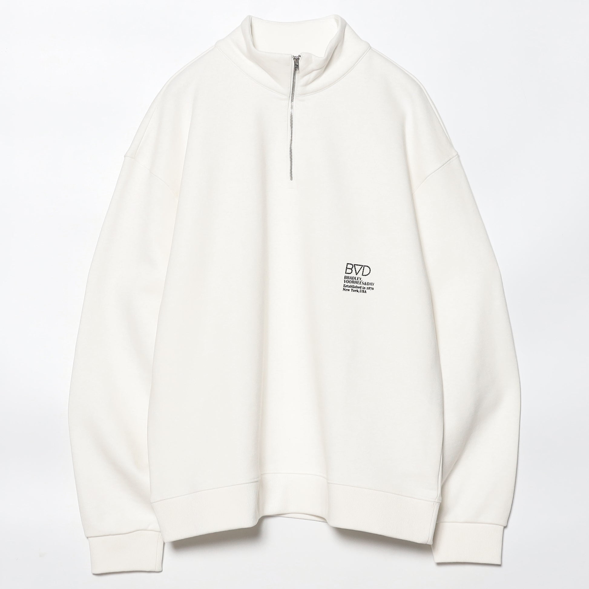 当ブランドがプリント加工用のTシャツ、いわゆるプリンタブルウェアを手掛ける直前の80年代前半に採用していたドット調のロゴをプリントしたハーフジップスウェットが登場。11ozのヘビーウェイトな肉厚感、春先にちょうど良い風通しの良い裏パイルで若干ワイドなシルエットが調子いいジップスウェット。左胸下のプリントポジションと、80’sロゴ、創業者3人の名等、納まりの良いワンポイントデザインがナイスマッチ。同時リリースのロンTと同じくデザイン的に永遠に着れる1枚。