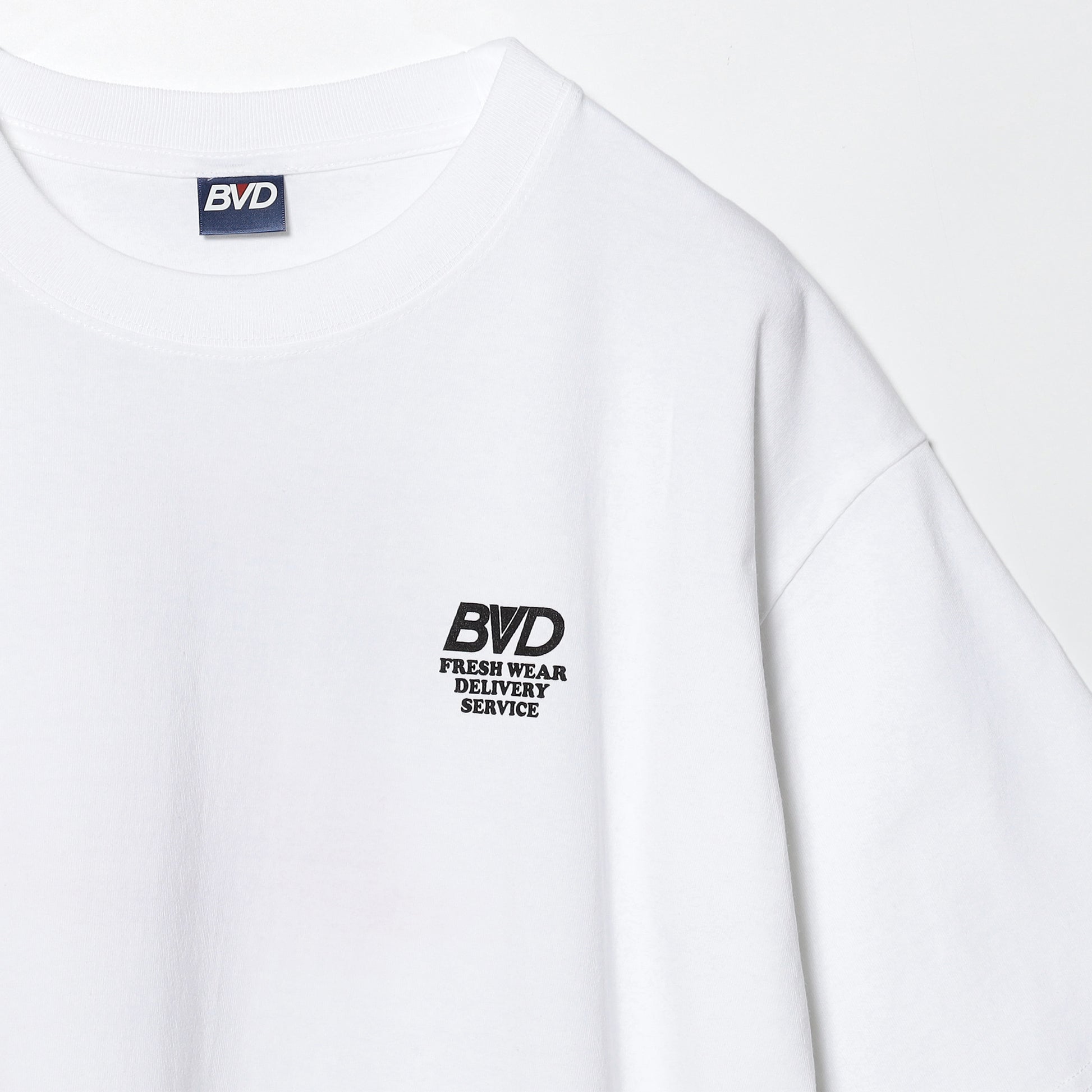 「新鮮な衣服を届けるサービス(FRESHWEAR DELIVERY SERVICE)」という架空プロジェクトのユニフォームコレクションが登場。FDSは当ブランドが各リテールストアに、新鮮な商品を特別なボックスに入れてお届けするサービスを担う架空のプロジェクトで、実際に国内外でもブランドロゴが入った特殊なダンボール箱に入れて納入していた時代があり、そんな古き良き時代を再現したい、をコンセプトにおいたコレクション。バックには、ボックスから飛び出すブランドロゴを書き起こしたプロジェクトのメインアイコンをプリント。ボディは6oz程度のちょうどいい生地感の半袖Tで、比較的ワイドなシルエットで、デザインはもちろん、生地もシルエットも調子いい一枚。
