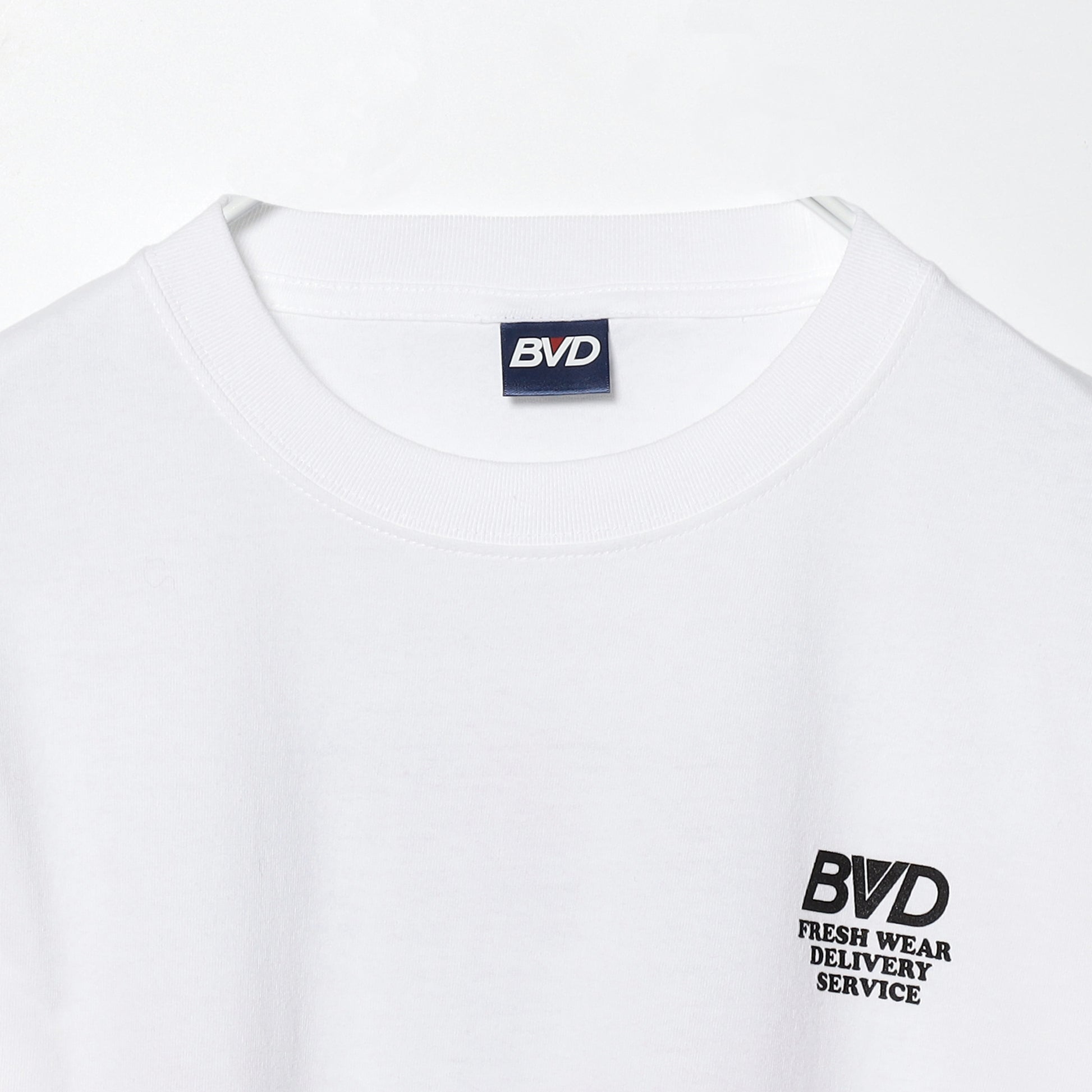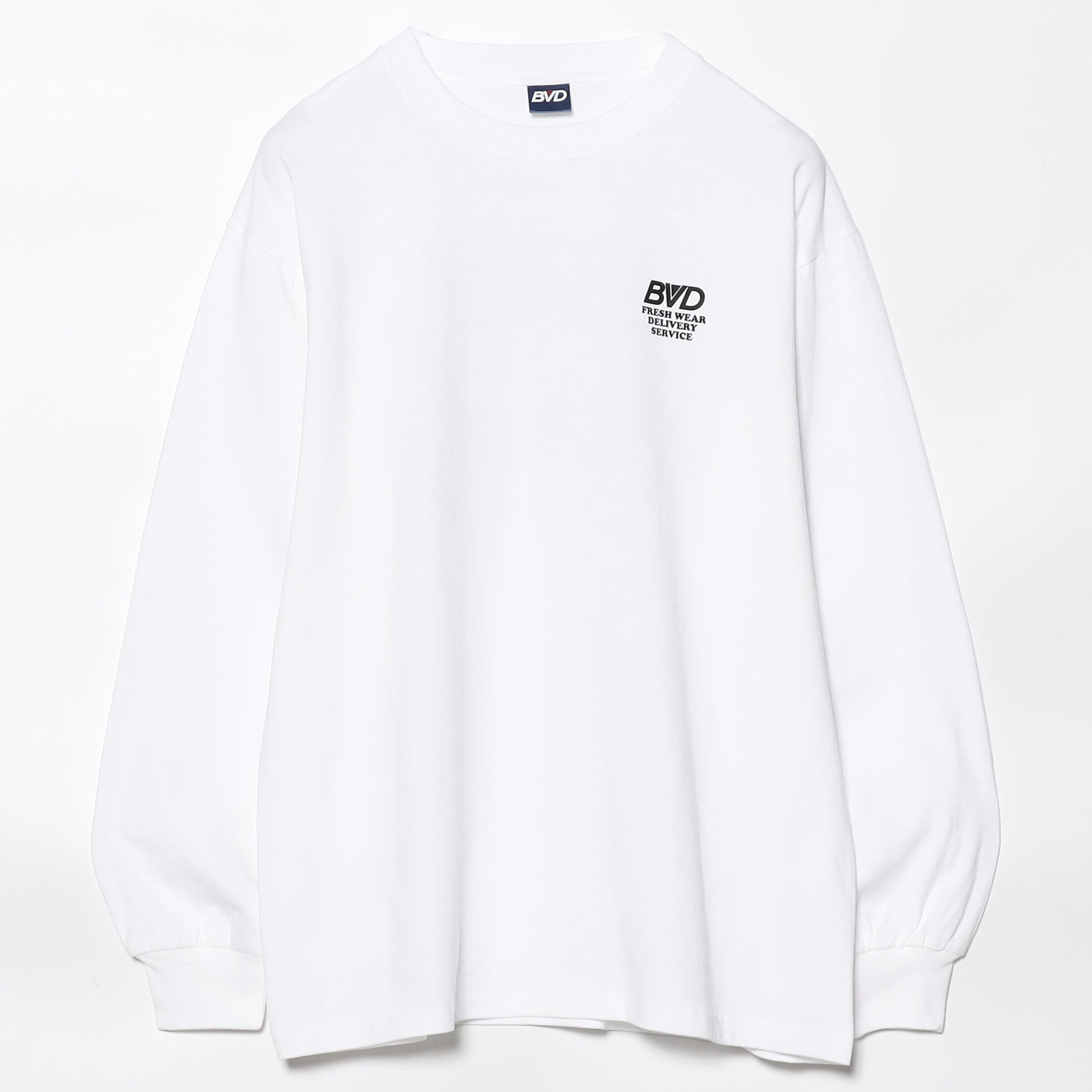 「新鮮な衣服を届けるサービス(FRESHWEAR DELIVERY SERVICE)」という架空プロジェクトのユニフォームコレクションが登場。FDSは当ブランドが各リテールストアに、新鮮な商品を特別なボックスに入れてお届けするサービスを担う架空のプロジェクトで、実際に国内外でもブランドロゴが入った特殊なダンボール箱に入れて納入していた時代があり、そんな古き良き時代を再現したい、をコンセプトにおいたコレクション。バックには、ボックスから飛び出すブランドロゴを書き起こしたプロジェクトのメインアイコンをプリント。ボディは6oz程度のちょうどいい生地感のロンTで、比較的ワイドなシルエットで、デザインはもちろん、生地もシルエットも調子いい一枚。